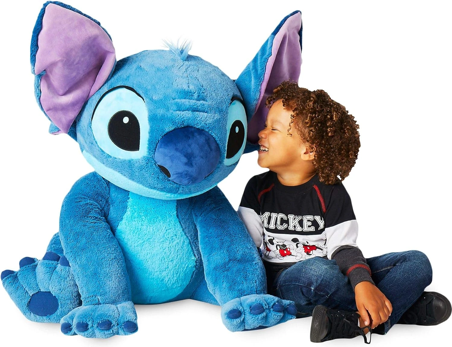 R : Bien que Stitch soit une peluche adaptée à tous les âges, il est particulièrement apprécié par les enfants à partir de 3 ans. Veuillez toujours superviser les jeunes enfants lors de l’utilisation.